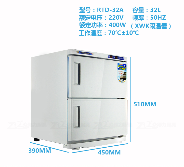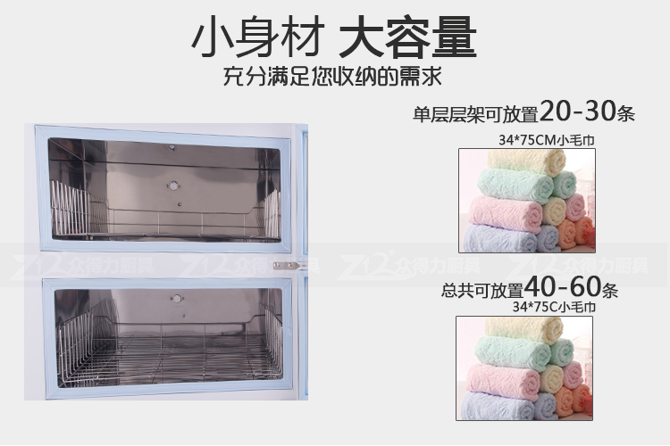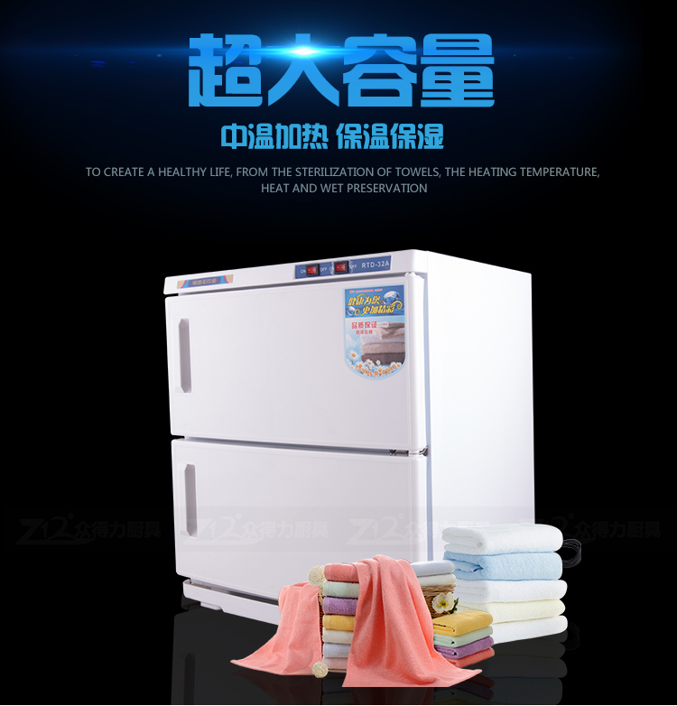 本產品中溫加熱,保溫保濕,毛巾消毒,不再讓細菌和螨蟲威脅您家人的健康和客戶的健康。不銹鋼內膽,智能溫控,四壁發熱,溫度分布均勻。